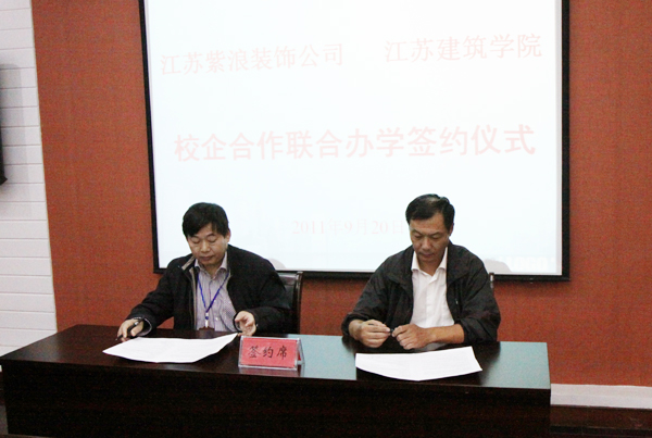 张登宏在签字仪式上致辞,他说,江苏紫浪装饰装璜公司是省内知名企业,不仅在行业内有影响,开发行业标准,还重视企业文化的建设,重视人才、注重信誉。希望校企双方以合作办学为平台,逐步延伸合作领域,开展全面、深度合作。严俊表示,对江苏建院认识始于公司的毕业生,江苏建院的“厚生尚能”育人理念能和企业“德才兼备、脚踏实地”的文化相容互助,希望这次合作能培养更多的人才,能为企业的发展做出突出贡献。