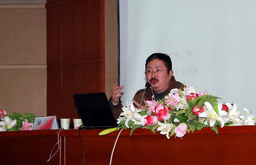 顾平教授首先以“艺术是什么”为切入点,就“艺术的多维景象”理解通过符号化艺术形态,写实的艺术,写意、表现与抽象的艺术,观念艺术等四个方面进行了阐述、解析,随后顾平教授提出了多维的艺术景象的应对策略,即理解艺术的多维特征,学会接受与评价艺术,养成自己的视觉意识,用自己的语言方式、自己的思考去创造艺术这一观点。