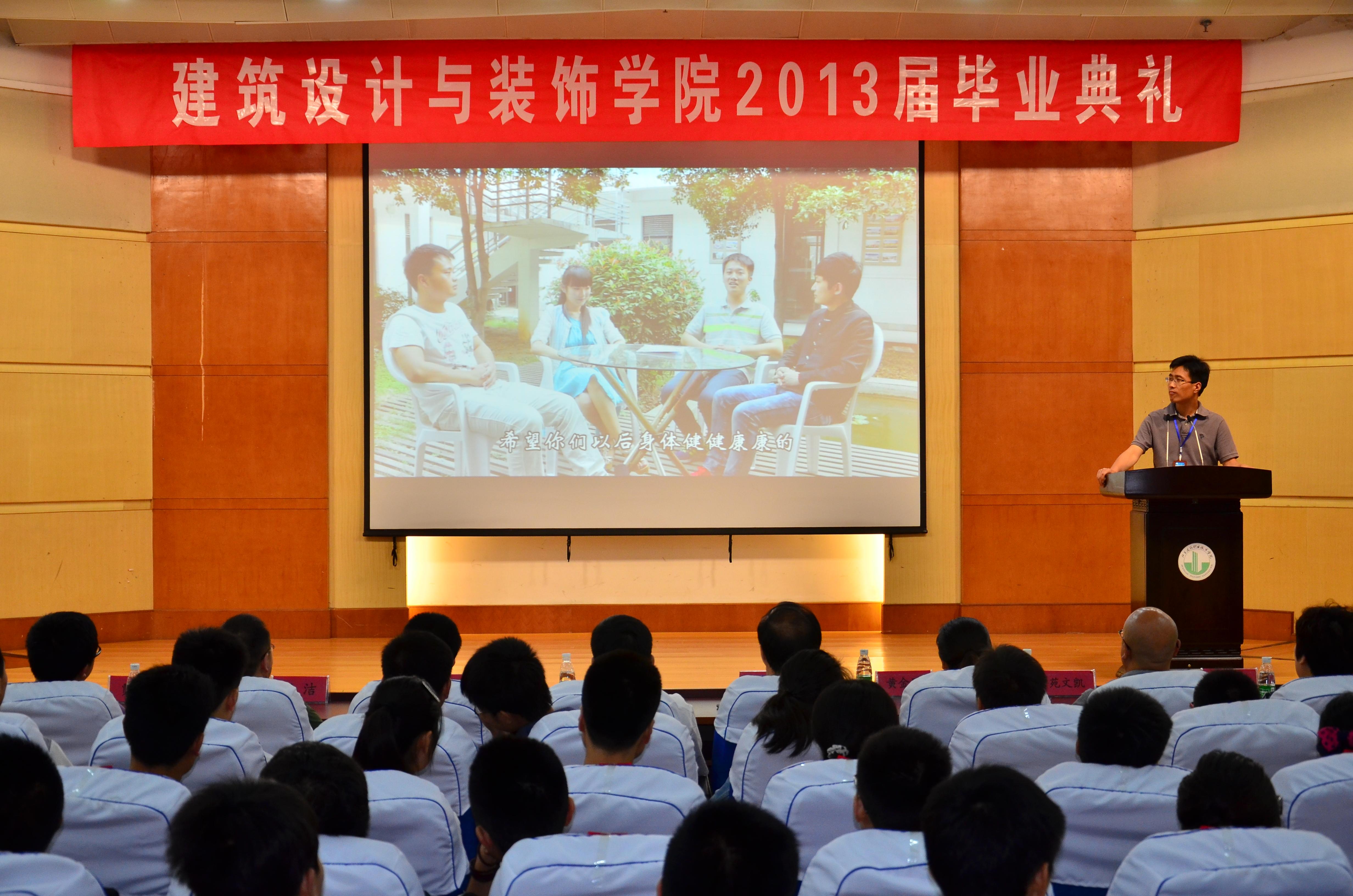 6月22日上午,建筑设计与装饰公司2013届毕业典礼在学术报告厅隆重举行。公司党政领导、全体老师和485名毕业生参加了典礼。毕业典礼由党总支副书记娄志刚主持。