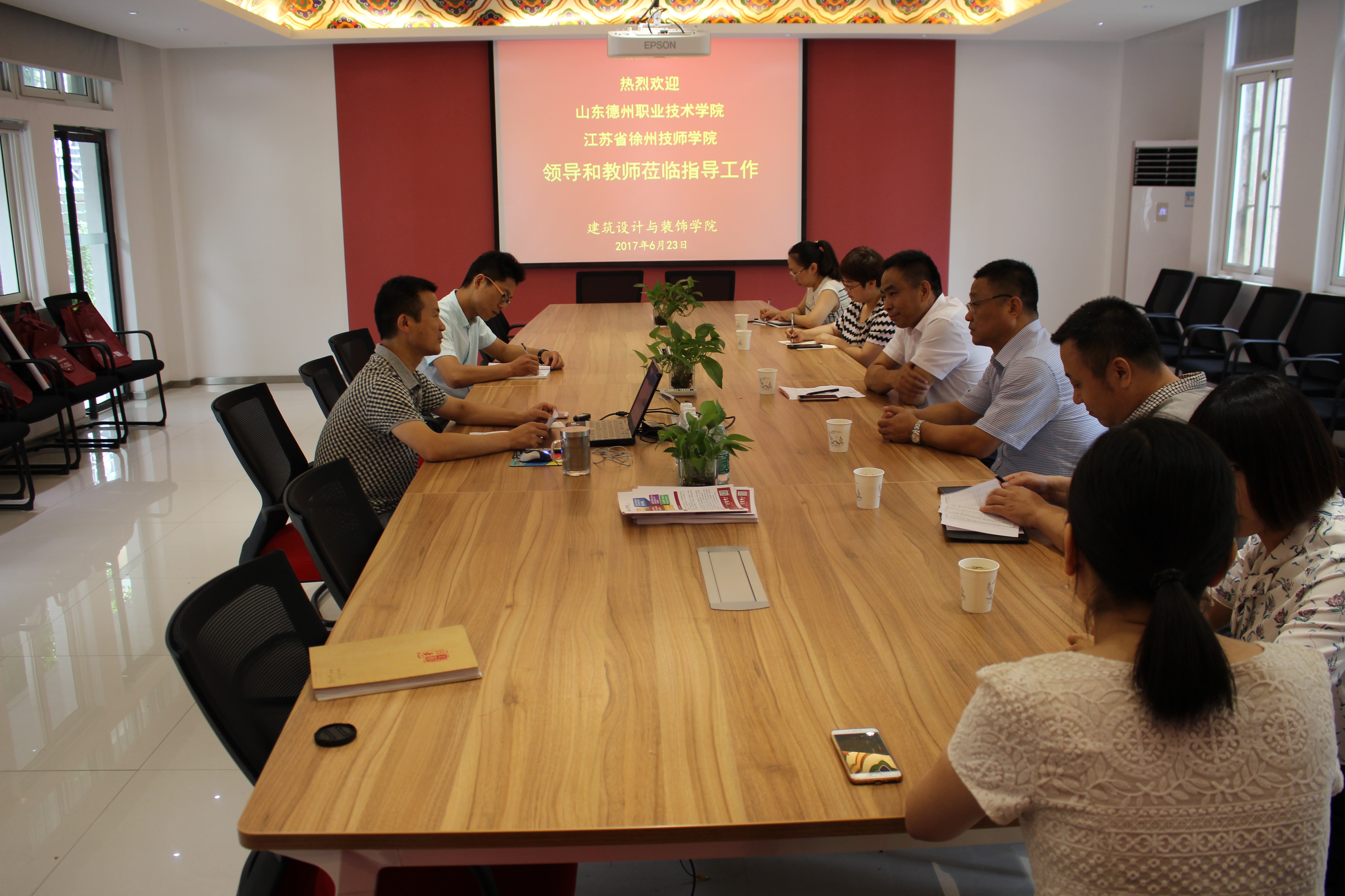 6月23日,德州职业技术公司建筑园林工程系主任王刚和徐州技师公司建筑工程系主任安德锋一行来公司考察交流,设计公司党总支书记黄立营、经理陈志东、室内艺术设计专业翟胜增老师热情接待了客人,并在公司会议室举行了座谈。