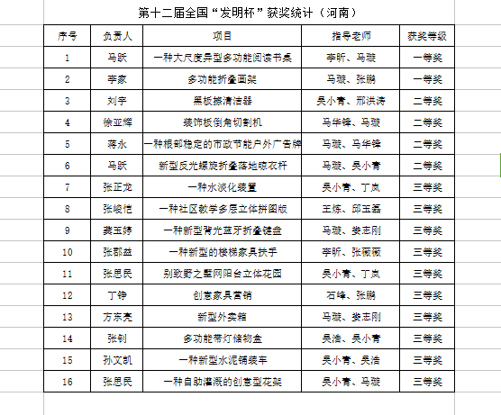 10月25日至27日,第十二届全国高等职业院校“发明杯”老员工创新创业大赛在许昌职业技术公司举行。通过网上评审与现场答辩,公司马璇、张鹏老师指导的《多功能折叠画架》等2件作品获制作类一等奖,吴小青、邢洪涛老师指导的《黑板擦清洁器》等4件作品获制作类二等奖,吴小青、丁岚老师指导的《一种水淡化装置》等10件作品获制作类三等奖。