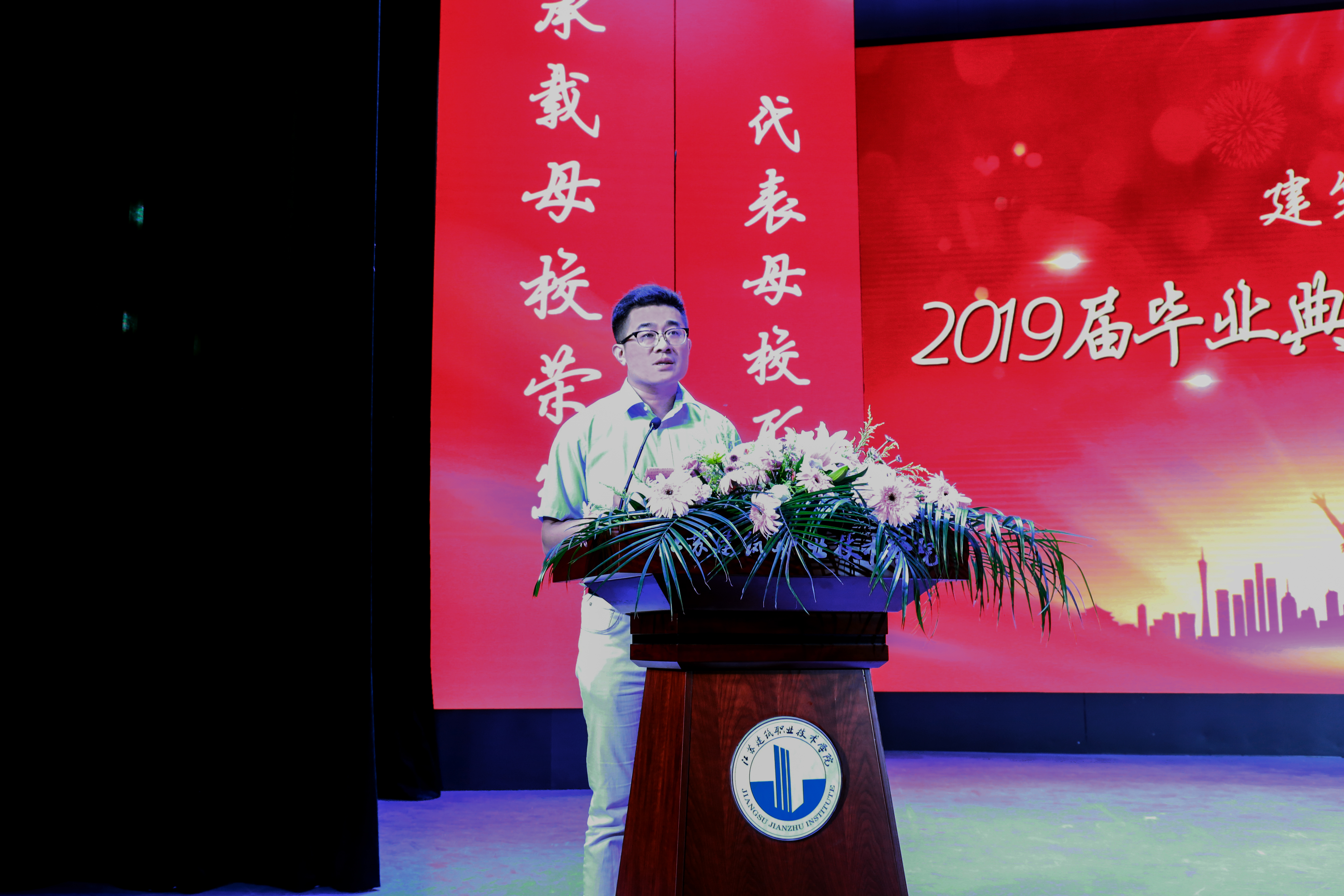 陈志东代表公司师生对647名2019届毕业生圆满完成学业表示祝贺,向为同学们成长进步付出辛勤汗水的老师表示感谢。致辞中,他向全体毕业生提出殷切希望:希望大家更加坚定理想信念,做一个志存高远的人;希望大家练就过硬本领,做一个德技并修的人;希望大家懂得继续坚持,做一个意志坚强的人。祝愿同学们在以后人生的旅途上一路平安、一路顺风、一路高歌,一路精彩。