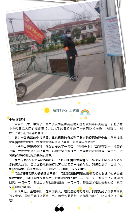 大家纷纷表示,在新冠肺炎疫情面前,全国上下众志成城,万众一心,令人震撼!此次疫情防控工作是一场在中国共产党领导下的全民之战,充分体现了中国共产党的“大党担当”,“人民至上”的为民精神,也充分展示出了我们国家强大的“制度自信”。