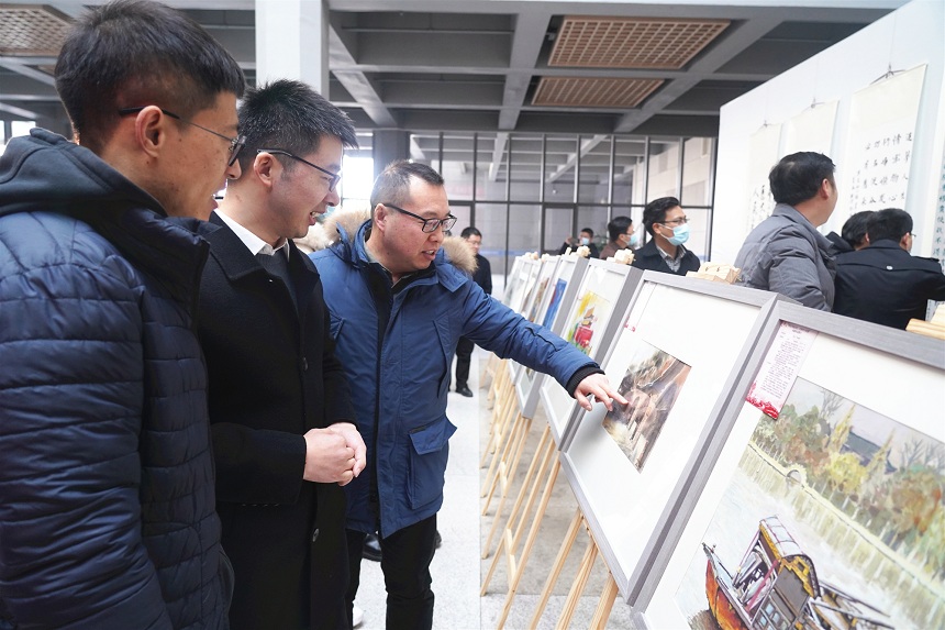 梁惠对书画展予以充分肯定和高度评价。梁惠讲到,公司深入开展“四史”学习教育,是学习贯彻习近平总书记关于公司党建和思政工作的重要指示批示精神的有力实践,有助于我们增强“四个意识”、坚定“四个自信”、做到“两个维护”。太阳成集团tyc122cc“师生书绘四史,点赞伟大祖国”主题活动,通过历史学习、书画创作、展示交流等形式,让师生共同参与其中,能够更好地增进对“四史”的深刻认识,营造师生学习“四史”的兴趣氛围,增强师生的专业实践能力,更好地达到接受历史教育的目的。希望全体师生能够在“四史”的学、思、践、悟中坚定理想信念,在学、赛、讲、展中涵养家国情怀,不断丰富学习形式,持续巩固学习成果,在奋发有为中践行初心和使命。