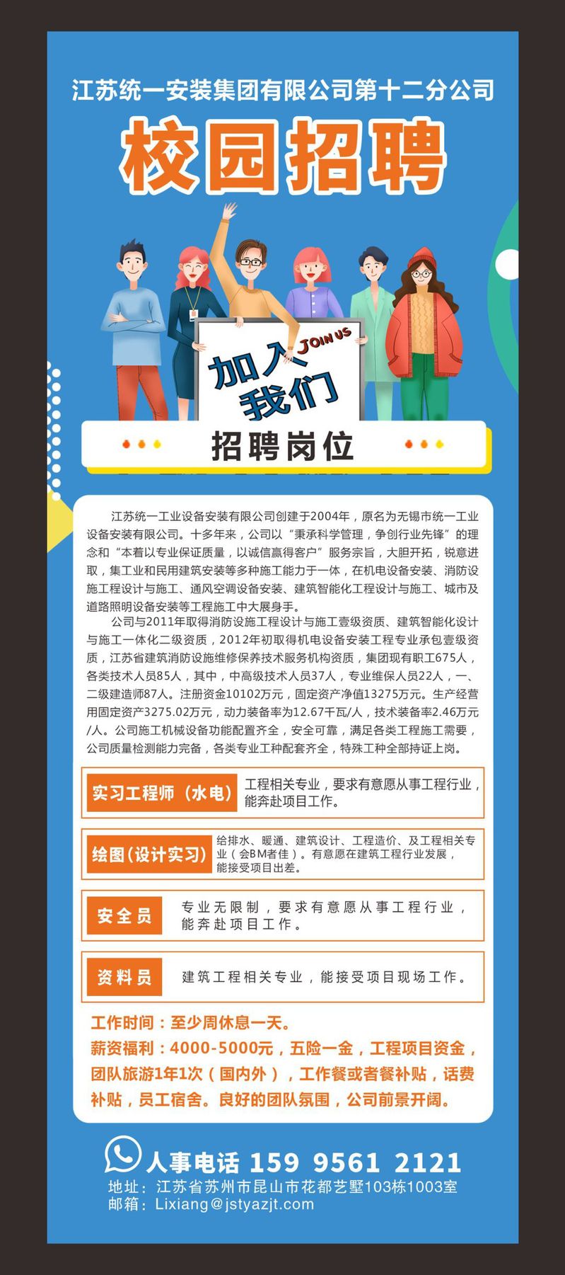 江苏统一安装集团有限公司第十二分公司校园招聘启事
