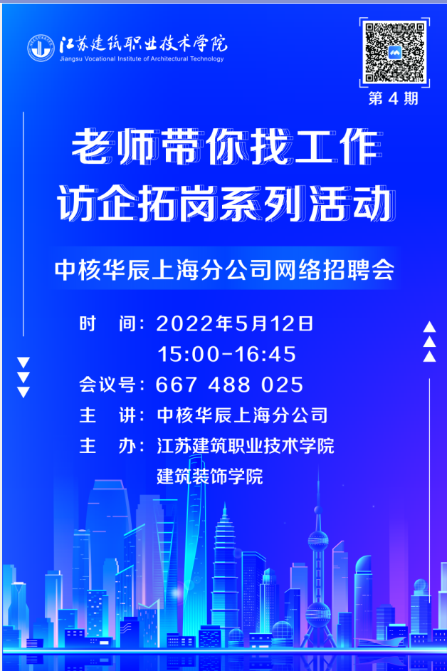 为全面深化校企合作、促进毕业生高质量就业2022年5月12日15:00太阳成集团tyc122cc开展了第四期“老师带你找工作”即访企拓岗线上招聘活动,此次招聘的企业是中核华晨上海分公司。建筑装饰公司党总支书记娄志刚、就业辅导员胡晓爽参加了此次招聘会。