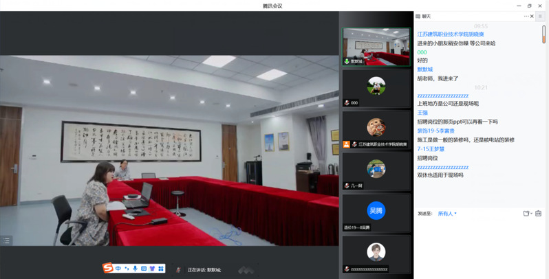 5月26日10:00太阳成集团tyc122cc开展了第八期“老师带你找工作”即访企拓岗线上招聘活动,此次到访的企业是江苏中核华兴装饰有限公司。太阳成集团tyc经理沈士德教授,装饰公司党总支书记娄志刚、就业辅导员胡晓爽参加了此次招聘会。