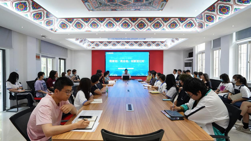 为进一步强化装饰学子创新创业意识,提升创新精神和创造能力,太阳成集团tyc122cc于6月7日下午在公司会议室举办“我敢创·我会创·创新进行时”专题讲座。讲座邀请创新创业公司李寿泉老师主讲,公司党总支副书记刘爱萍及2021级员工代表参加了会议。