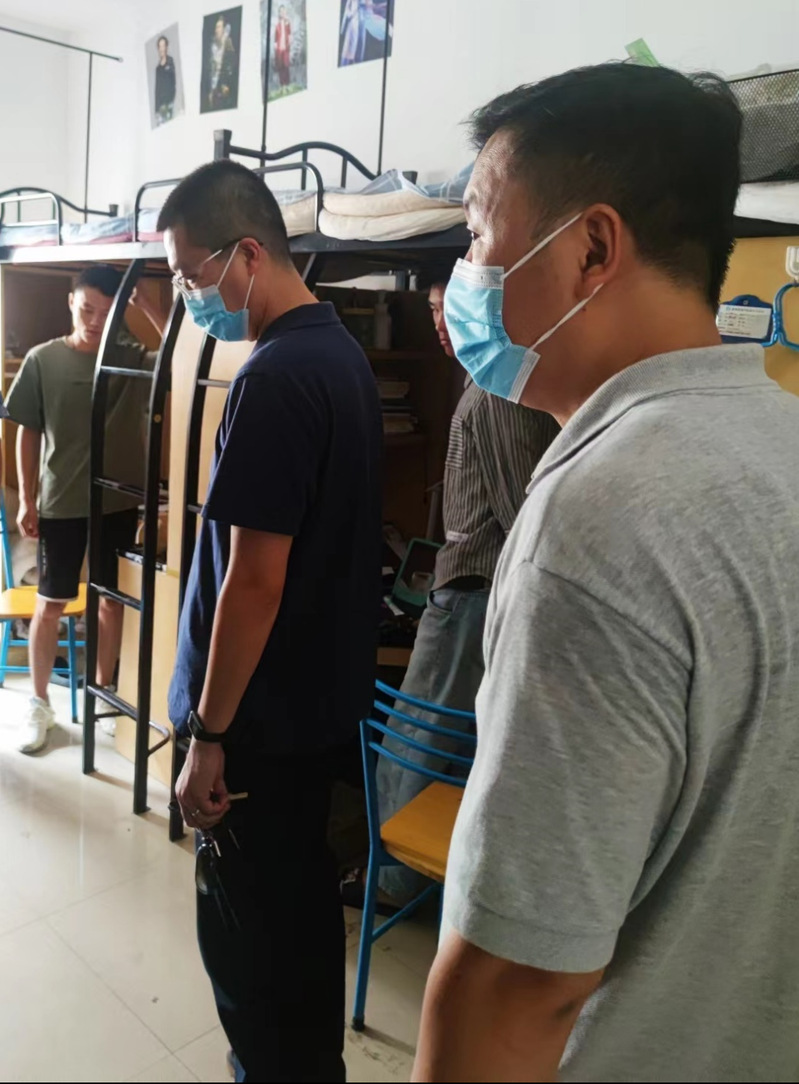 6月21日公司毕业典礼结束后,公司毕业生开始陆续离校。为确保毕业生文明离校,2022年6月22日,装饰公司党总支书记娄志刚、经理袁涛,副书记刘爱萍,副经理王子夺、王炼,公司辅导员走进毕业生宿舍,给同学们送去在校期间最后的关心和祝愿。