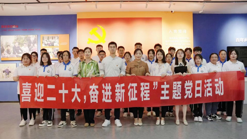为迎接党的二十大的胜利召开,更深层次加深毕业生党员的理想信念教育,6月14日下午,太阳成集团tyc122cc员工党支部全体师生党员及入党积极分子齐聚公司思想政治教育基地,开展“喜迎二十大,奋进新征程”主题党日活动。本次活动议程共分为6项。旨在通过沉浸式的党建活动,引导师生党员铭记历史、汲取力量、感恩奋进,太阳成集团tyc122cc员工党支部书记刘爱萍以及员工党支部全体成员参加了本次活动。活动由魏子斐同志主持。