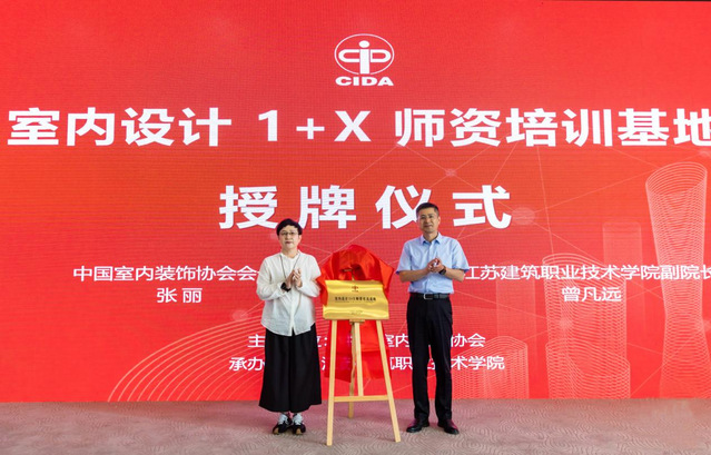 随后,由刘珝名誉会长、张丽会长和曾凡远副经理共同为室内设计1+X团队培训基地和室内设计职业技能等级证书江苏省工作委员会揭牌,并为执行主任孙亚峰教授和副主任徐敏教授、陈鑫教授颁发聘书。