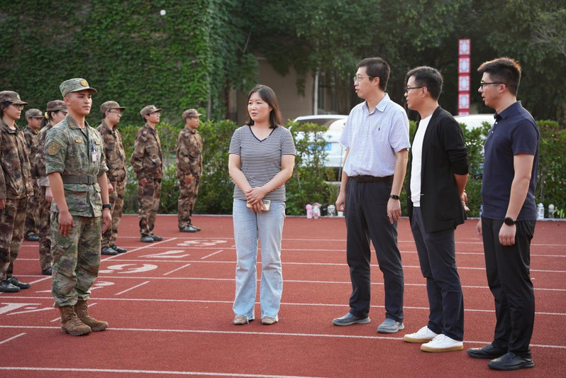 9月1日下午,太阳成集团tyc122cc领导班子及全体辅导员老师来到东操场看望慰问了2021级军训承训教官和参训员工。