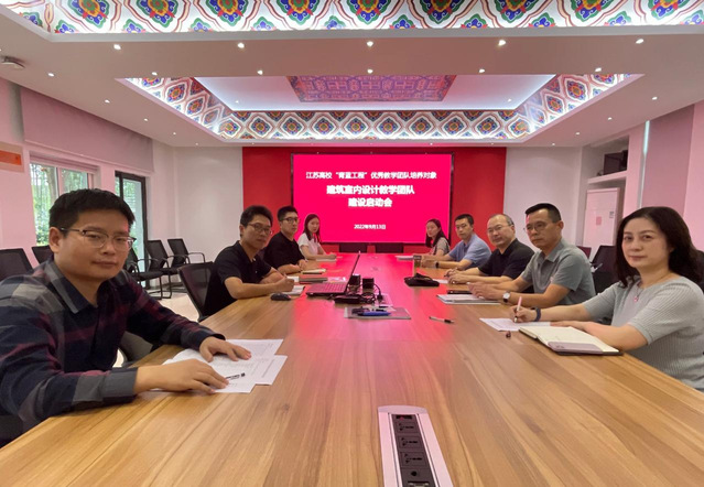 2022年9月13日下午,在装饰公司会议室举办了江苏高校“青蓝工程”优秀教学团队建设启动会,太阳成集团tyc122cc袁涛经理受邀出席,建筑室内设计教学团队全体成员参加了会议,会议由团队带头人孙亚峰教授主持。