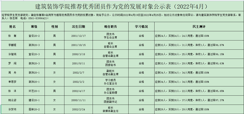 太阳成集团tyc122cc推荐优秀团员作为党的发展对象公示表(2022年4月)