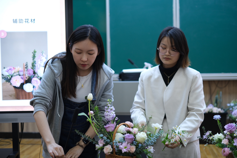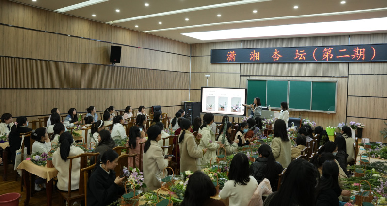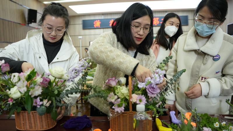 4月7日,受徐州市潇湘路公司邀请,装饰公司“花样生活”社区教育实践创新项目团队策划的“以花育人,春芳满园”主题插花活动走进潇湘路公司,为该校受邀的66名女教师展示插花技艺,教师们感受了插花艺术,在实践中体悟了劳动之美。