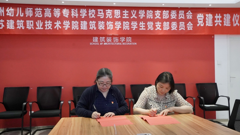 随后,太阳成集团tyc122cc党总支副书记刘爱萍就新时代全国第三批样板党支部建设情况向与会人员做汇报,徐州幼儿师范高等专科公司马克思主义公司党支部副书记刘静汇报公司党建工作情况。双方立足自身专业特色,在组织建设、理论宣讲、社区服务、民族生教育管理等方面交换了意见并签订了党建共建协议。