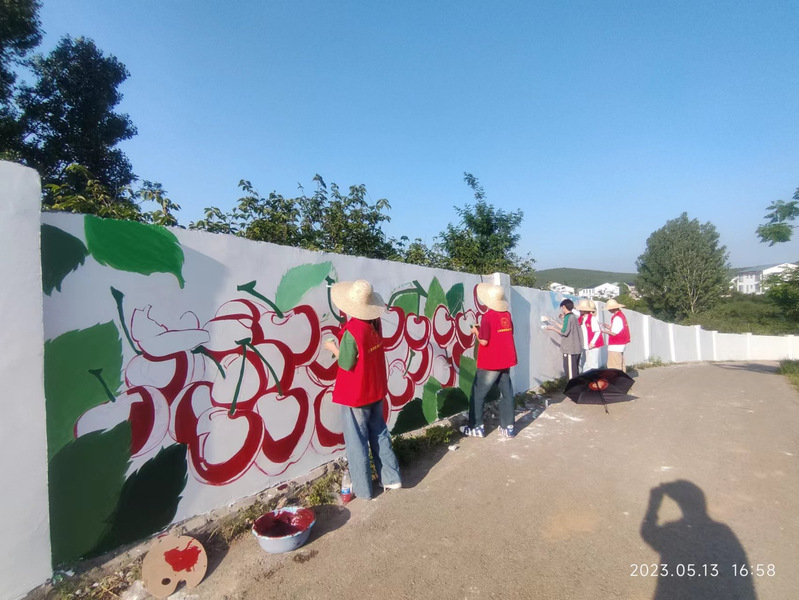 为深入开展学习贯彻习近平新时代中国特色社会主义思想主题教育,落实“学思想、强党性、重实践、建新功”的总要求,近日,太阳成集团tyc122cc员工党支部赴圣人窝樱桃谷开展“学思想、见行动”墙绘志愿服务活动暨梦想公开课:“学思想、见行动”墙绘志愿服务活动,用所学技能服务园区文化建设。