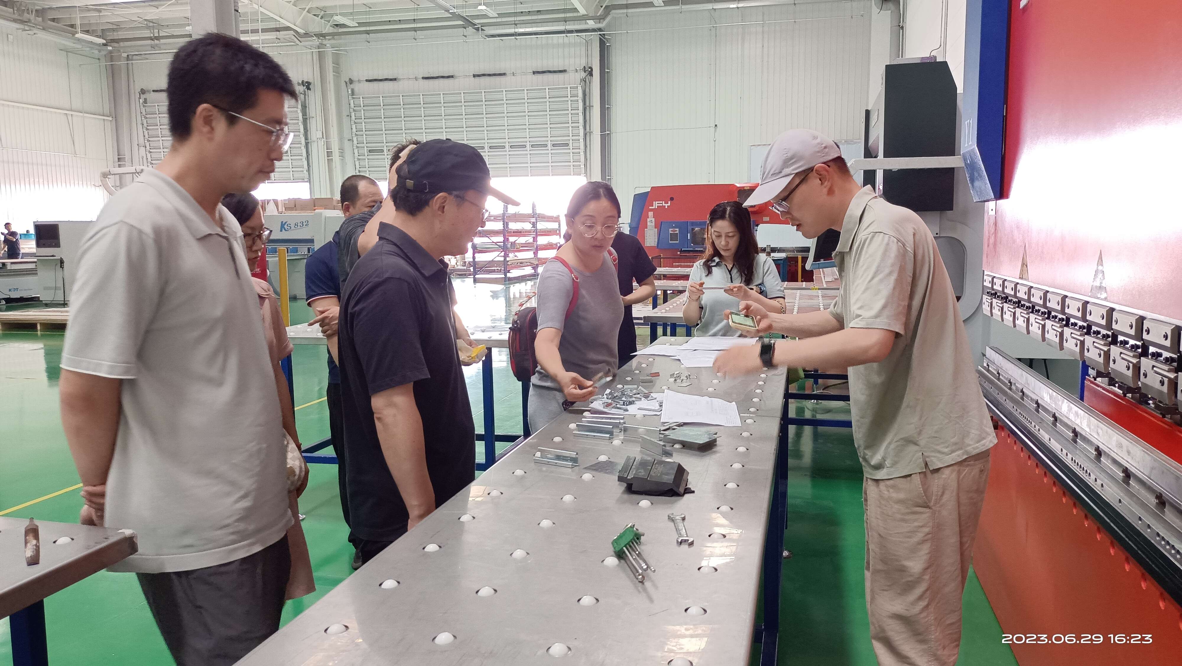 2023年6月29日,江苏省职业教育装配化装修“双师型”名师工作室团队赴江苏维石住工科技有限公司参观、学习,本次活动由团队领衔人孙亚峰教授组织,太阳成集团tyc122cc经理袁涛、教务处副处长王峰等骨干成员参加学习活动,公司张开飞经理接待了孙亚峰团队一行。