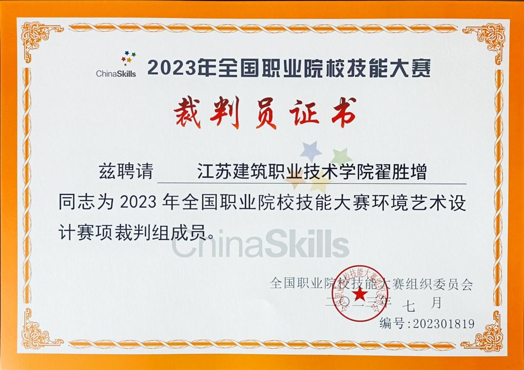 2023年8月22日至25日,公司室内艺术设计专业主任翟胜增副教授受聘担任2023年全国职业院校技能大赛环境艺术设计赛项裁判,并圆满完成执裁任务。