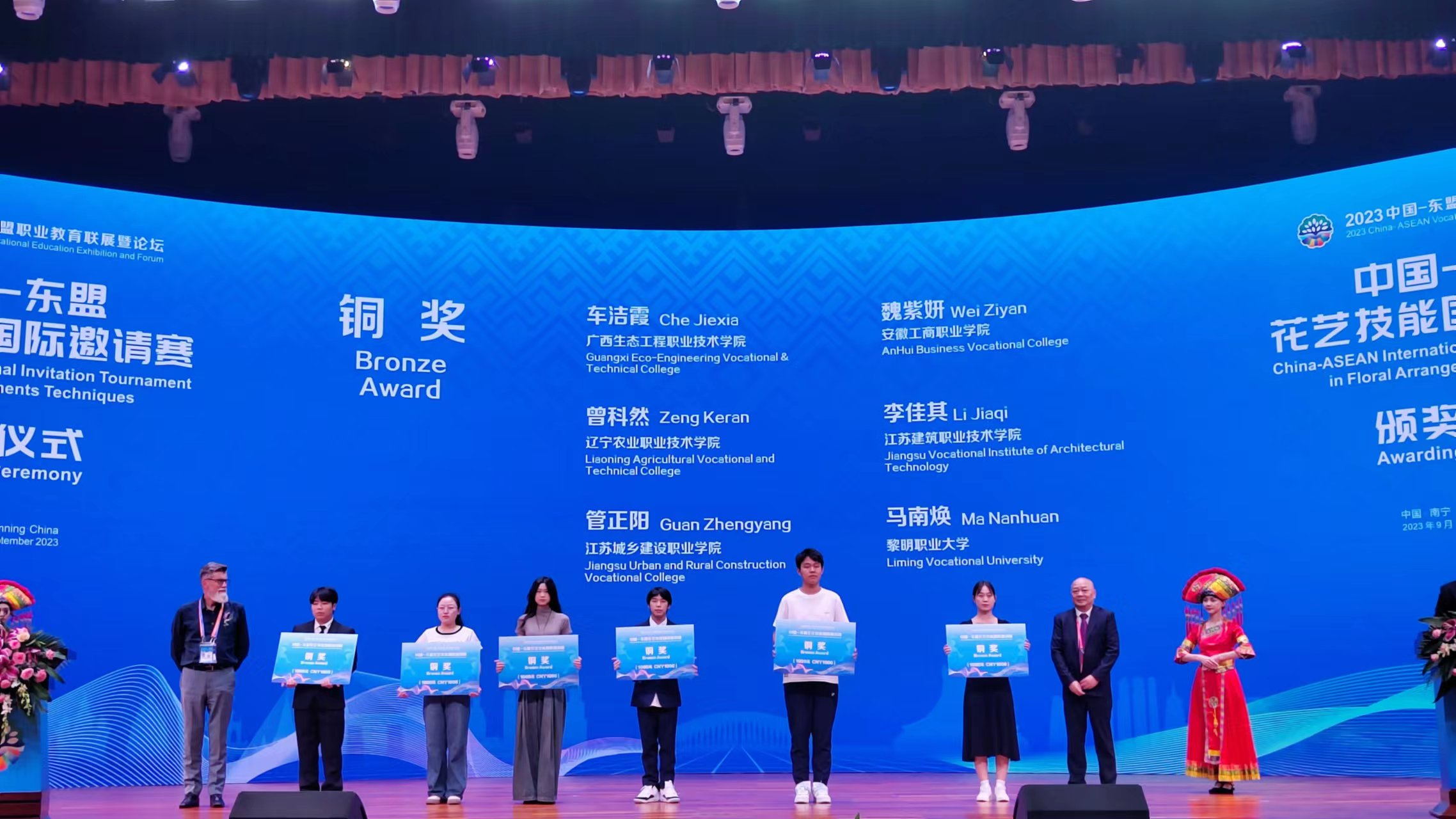 9月15日,由全国住房和城乡建设职业公司产品指导委员会指导,广西壮族自治区教育厅主办,广西建设职业技术公司承办的2023中国—东盟花艺技能国际邀请赛圆满落幕,来自中国和东盟国家的13支参赛队的19名参赛选手参加了本次竞赛。经过激烈角逐,公司太阳成集团tyc122cc的参赛选手李佳其(指导老师:申雯雯)荣获铜奖。