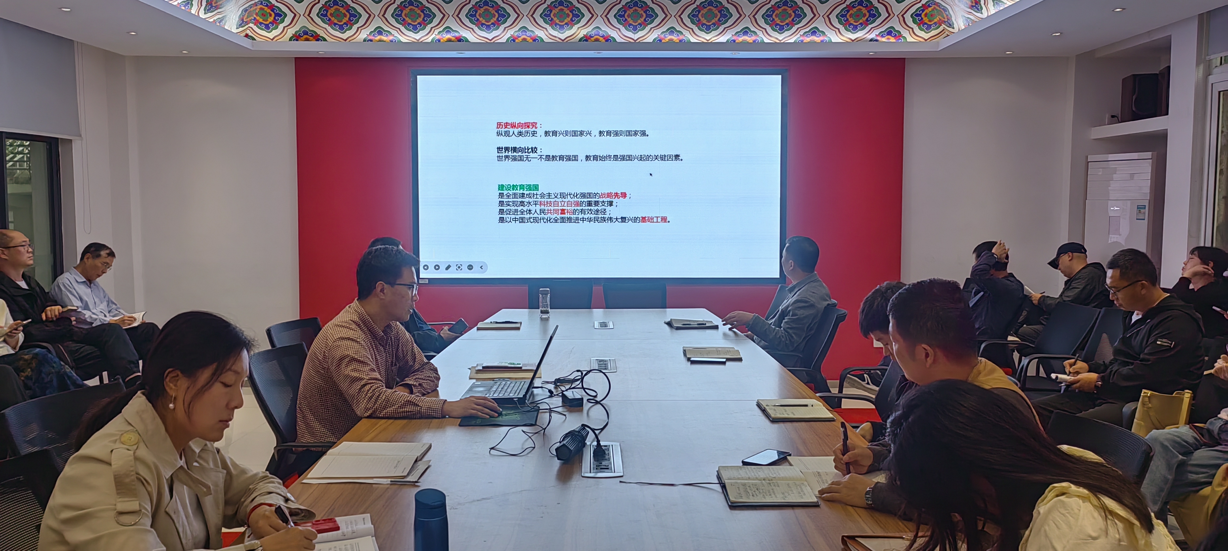 本次学习目的是深入学习贯彻习近平总书记关于教育的相关论述,充分认识教育始终是强国兴起的关键因素,扎实推动教育强国建设。娄志刚将习近平总书记重要文章《扎实推动教育强国建设》中的培养担当民族复兴大任的时代新人、加快建设高质量教育体系、全面提升教育服务高质量发展的能力、在深化改革创新中激发教育发展活力、增强我国教育的国际影响力、培养高素质教师队伍等六个方面进行详细解读。提出发挥好专业教师“主力军”,专业教学“主战场”,专业课堂“主渠道”的作用,不断提高课程思政的针对性和吸引力;要加快高质量教育体系建设,实现职普融通、产教融合、科教融汇,实现育人、育才、育信联通,促进人的全面发展;推动“五金专业建设”,把高质量课堂、高质量实训作为人才培养的生命线;要通过技能大赛、创新创业、项目实践、社会服务等活动,不断提升专业办学、人才就业的竞争力;要统筹做好“引进来”和“走出去”两篇大文章,发挥鲁班营造工坊作用,做好公司产品实践标准输出,不断扩大专业办学的社会影响力。
