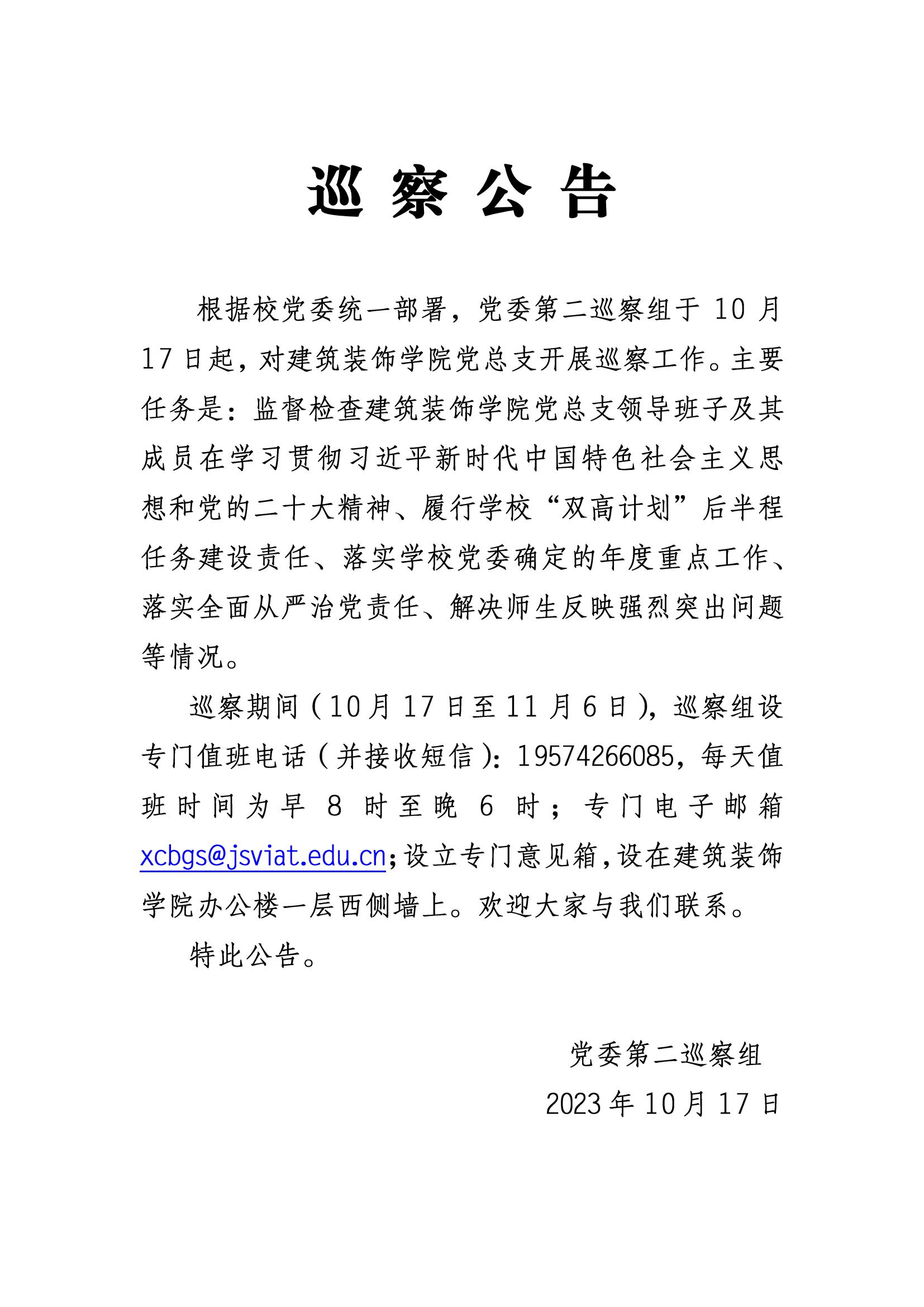 巡 察 公 告