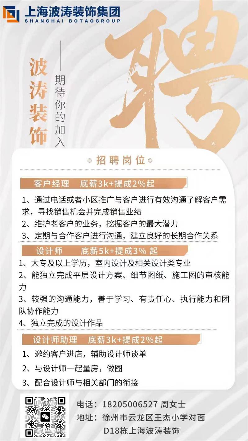 徐州本地企业,招聘客户经理、设计师、设计师助理,要求建筑类相关专业,能会用cad 绘图就行,请还没就业的同学尽快投递。