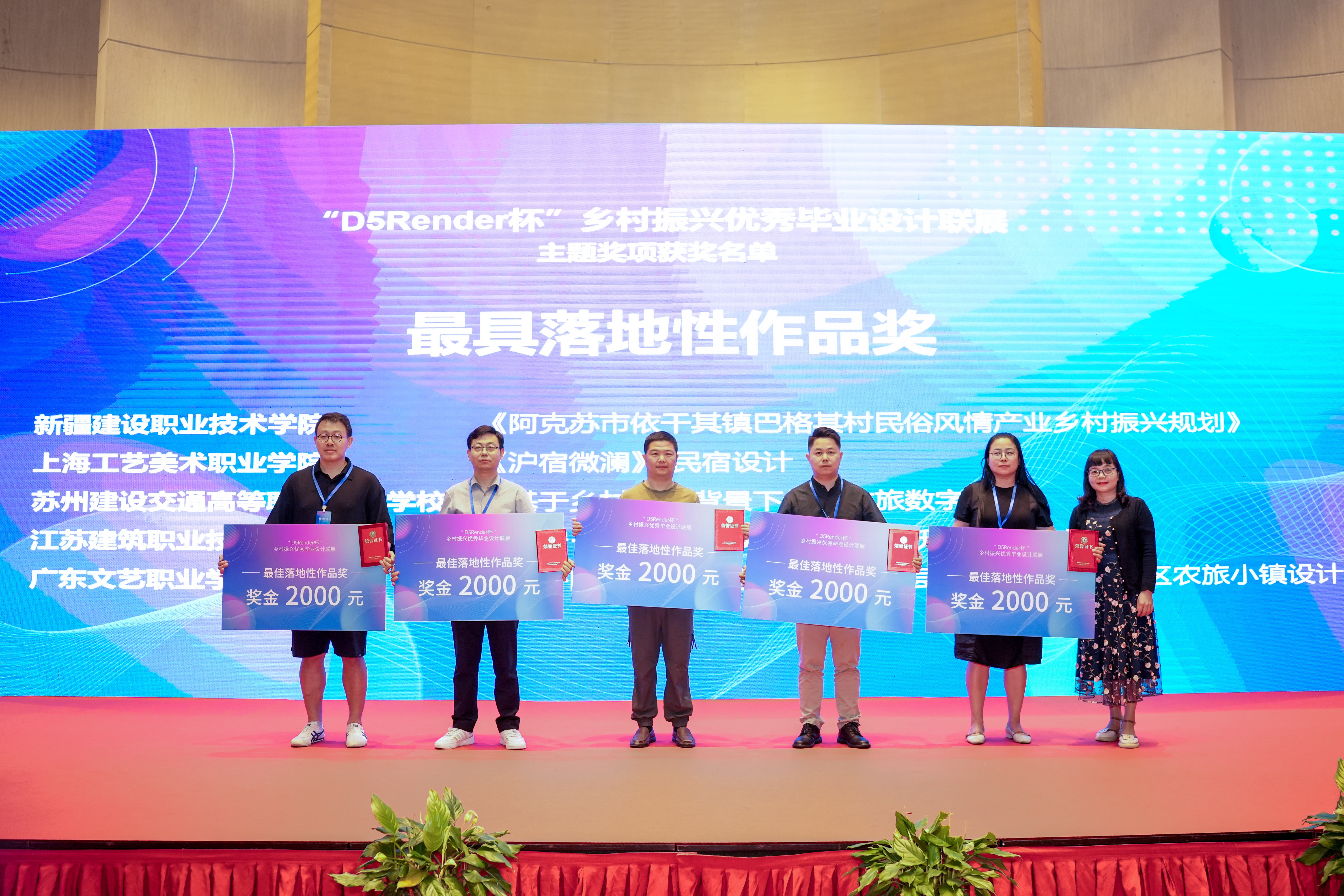 本次会议包括主题讲座、专业论坛、教材建设研讨和颁奖等环节。在专业论坛环节,公司副经理翟胜增作《深化产教融合,赋能专业升级》的报告,分享了公司校企合作、产教融合的经验和做法,并参与了研讨。在教材建设研讨环节,专委会副主任委员孙亚峰教授受邀主持环境艺术设计专业立项教材研讨,史华伟老师作为《景观设计实务》教材主编参加了环境艺术设计专业立项教材研讨,顾曼老师作为《室内设计概预算》教材主编参加了室内设计专业立项教材研讨。随后举办了乡村振兴优秀毕业设计联展颁奖仪式,公司员工荣获“最具落地性作品奖”1项、优秀奖3项。