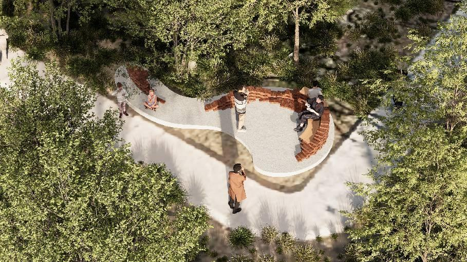 第二阶段在充分的调研准备,开始在仲寨北村村口广场选择场地并为村民设计砖构作品。经过一系列的员工设计方案的仔细探讨,最终设计出了作品《凤飞鱼跃》,其融合了仲寨北村凤凰桥的历史传说与沙沟渔业的技艺精髓,选取“鱼”和“凤凰”作为核心意象,并以凤凰古桥、仲由像、入村牌坊和拱桥四点交汇的中心区域,作为该设计的原点,通过层叠式一丁一顺的曲线砖墙的交织砌筑,融合传统叠涩工艺,将鱼跃水面、凤舞云端的美丽姿态,定格于空间之中,打造出一处集村民聚会交流、渔民休憩放松及美景观赏功能于一体的砖砌构筑物,寓意着仲寨北村的未来,如凤翱翔,如鱼得水。