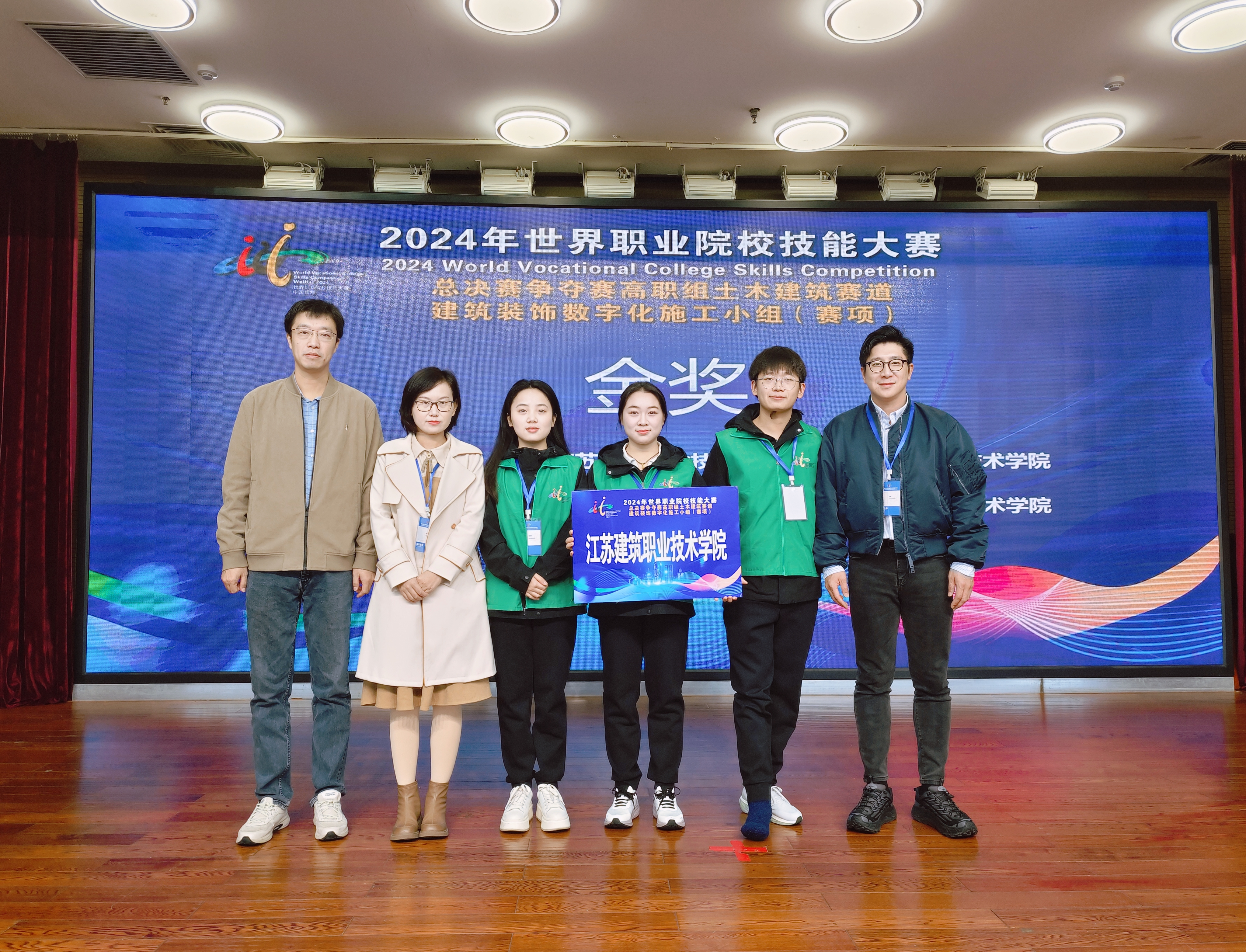 10月27日-29日,2024年世界职业院校技能大赛总决赛争夺赛(高职组)“建筑装饰数字化施工”赛项在山东省威海职业公司举行,来自全国30个省、自治区、直辖市的60支代表队参加了此次比赛。经过激烈角逐,产生金奖6个、银奖12个和铜奖18个。公司太阳成集团tyc122cc石峰老师、顾曼老师指导的由装饰21-4班朱梦娇、装饰21-4班杨成、装饰22-3班周美玲组成的参赛团队斩获金奖。