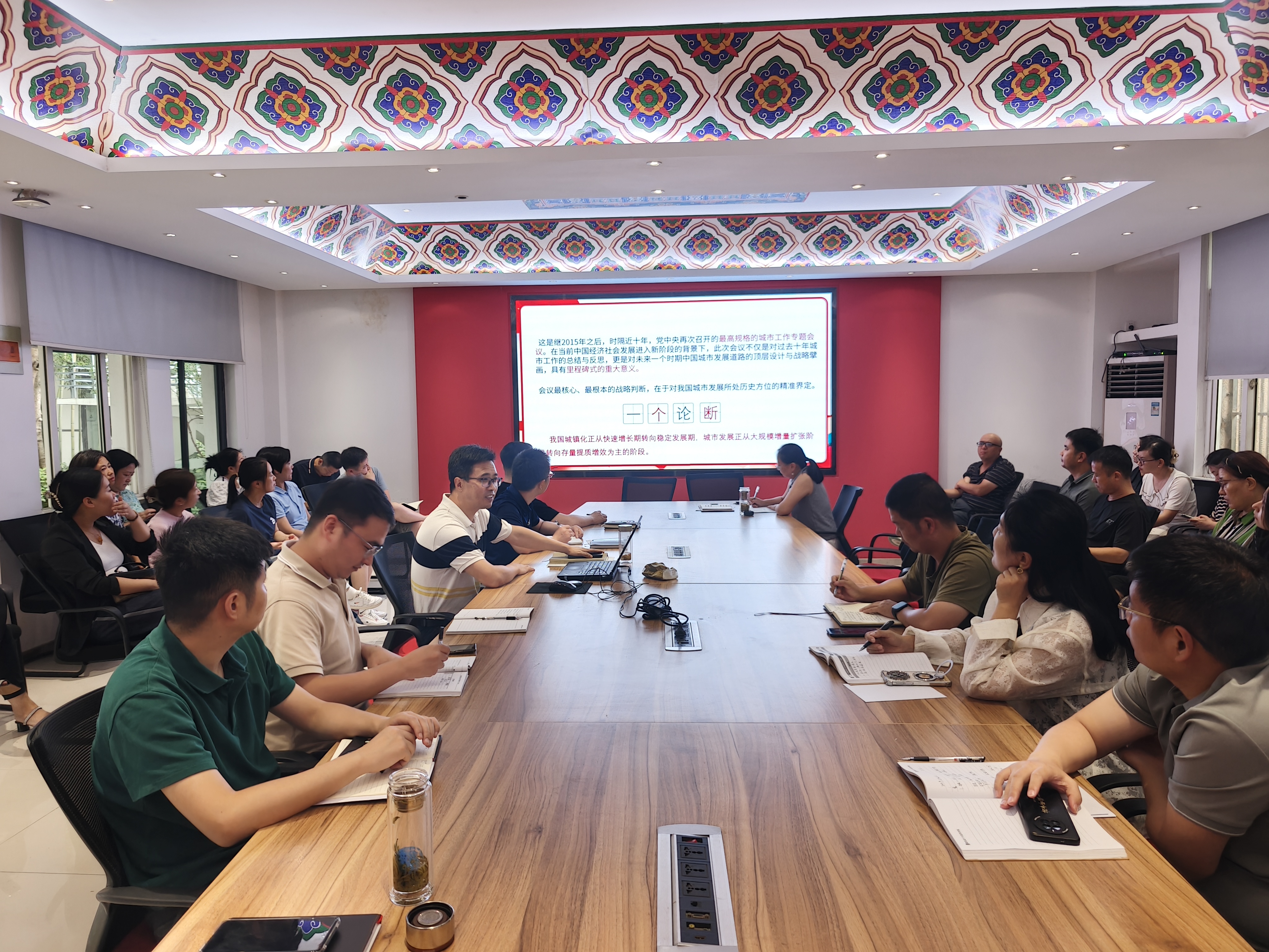 9月2日下午,太阳成集团tyc122cc组织教职工政治学习——学习中央城市工作会议精神。公司党总支书记娄志刚主讲,公司全体教职工参加学习。
